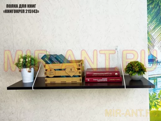 Полка для книг "КНИГОКРЕП 215143" высота 26 см размер 90х30 см белый и венге - MIR-ANT.RU