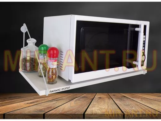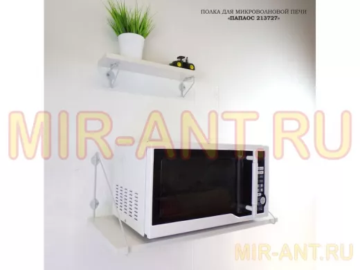 • Полка надежно крепится к стене при помощи анкеров или шурупов с дюбелями, на ней можно разместить микроволновую печь, кухонную технику, посуду, специи и многое другое