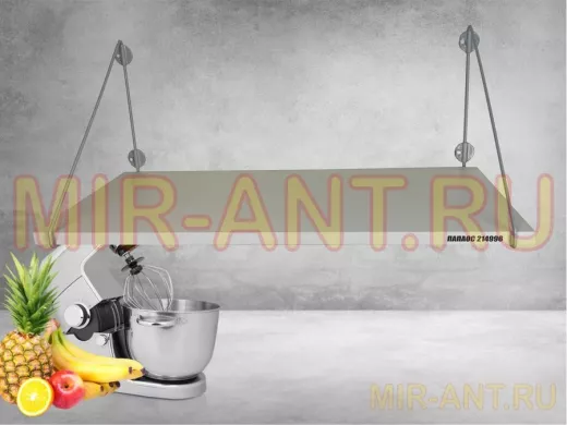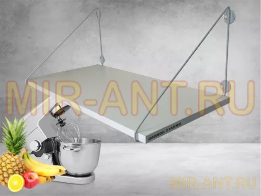 • Полка надежно крепится к стене при помощи анкеров или шурупов с дюбелями, на ней можно разместить микроволновую печь, кухонную технику, посуду, специи и многое другое