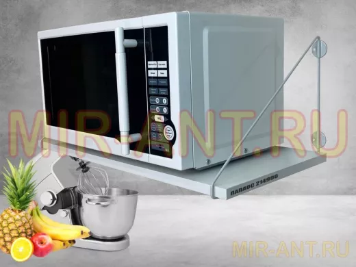 Полка для микроволновки "ПАПАОС 214996" высота 26 см размер 60х30 см серый и белый шагрень - MIR-ANT.RU