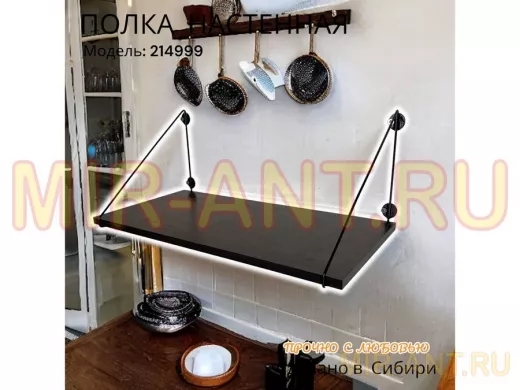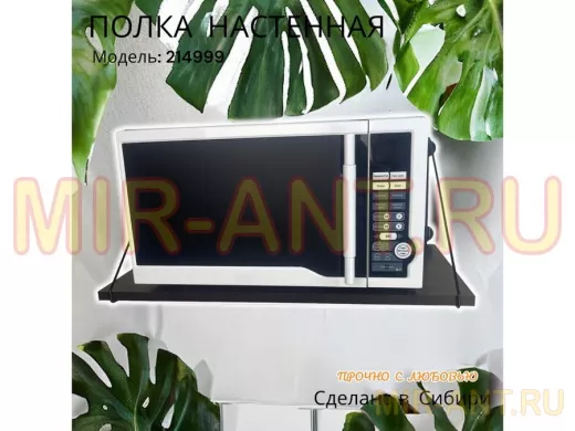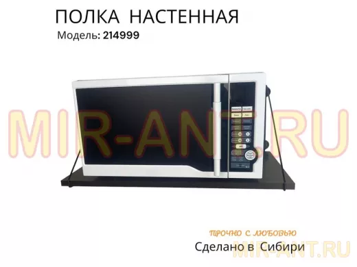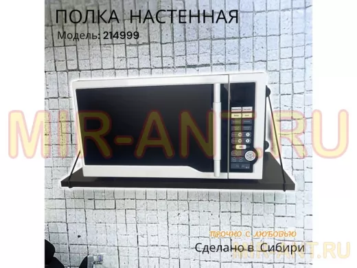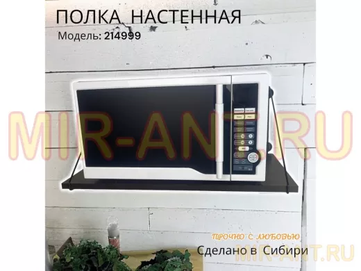 • Полка надежно крепится к стене при помощи анкеров или шурупов с дюбелями, на ней можно разместить микроволновую печь, кухонную технику, посуду, специи