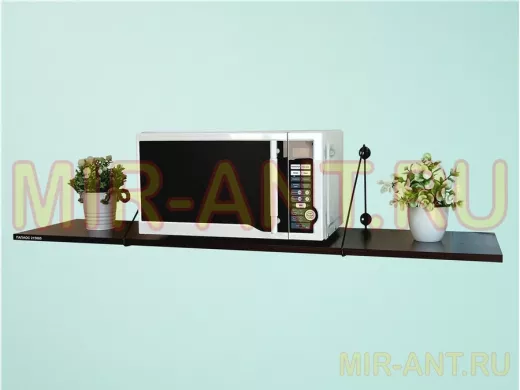 • Полка надежно крепится к стене при помощи анкеров или шурупов с дюбелями, на ней можно разместить микроволновую печь, кухонную технику, посуду, специи