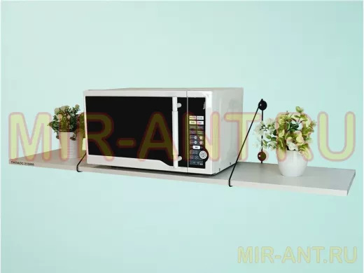 • Полка надежно крепится к стене при помощи анкеров или шурупов с дюбелями, на ней можно разместить микроволновую печь, кухонную технику, посуду, специи