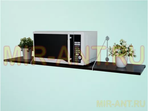 • Полка надежно крепится к стене при помощи анкеров или шурупов с дюбелями, на ней можно разместить микроволновую печь, кухонную технику, посуду, специи