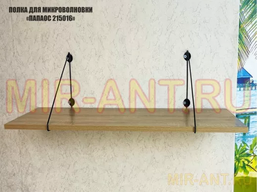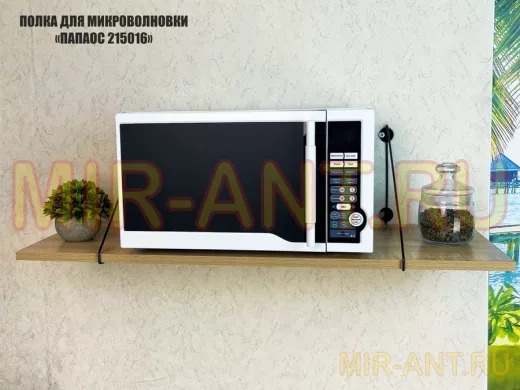 • Полка надежно крепится к стене при помощи анкеров или шурупов с дюбелями, на ней можно разместить микроволновую печь, кухонную технику, посуду, специи