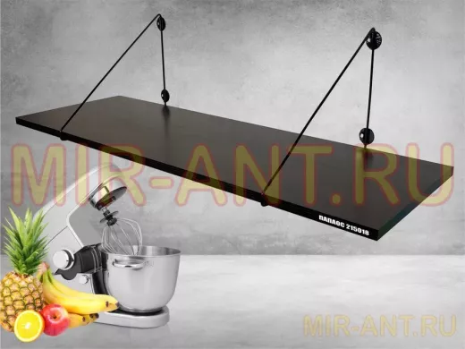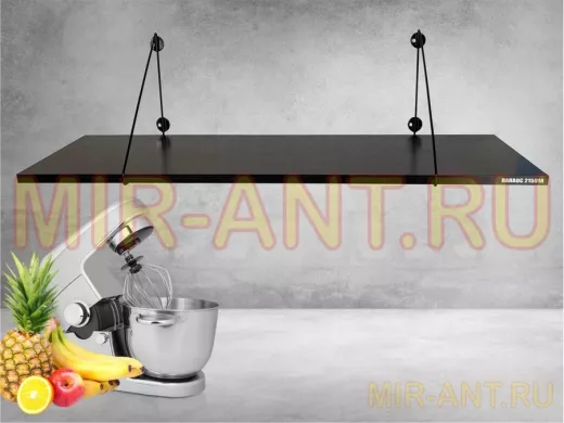 • Полка надежно крепится к стене при помощи анкеров или шурупов с дюбелями, на ней можно разместить микроволновую печь, кухонную технику, посуду, специи