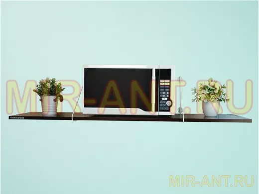 • Полка надежно крепится к стене при помощи анкеров или шурупов с дюбелями, на ней можно разместить микроволновую печь, кухонную технику, посуду, специи