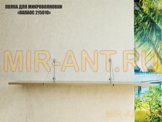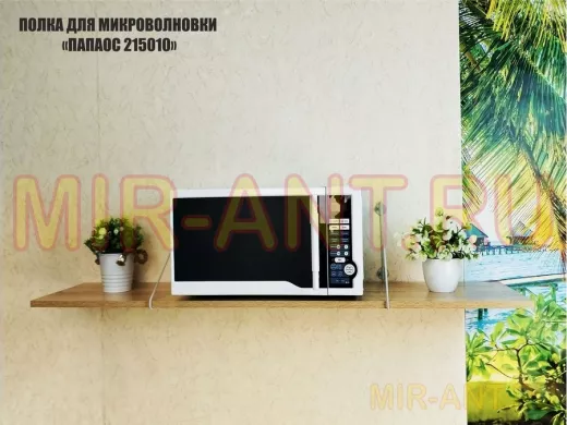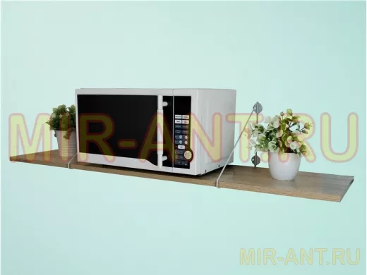 • Полка надежно крепится к стене при помощи анкеров или шурупов с дюбелями, на ней можно разместить микроволновую печь, кухонную технику, посуду, специи