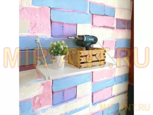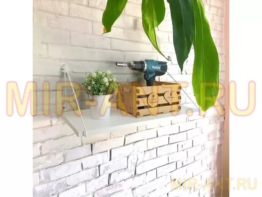• Полка надежно крепится к стене при помощи анкеров или шурупов с дюбелями, на ней можно разместить микроволнрвую печь, кухонную технику, посуду, специи.