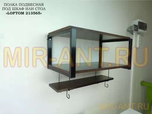 Полка подвесная под шкаф или стол черная, 60х15 см, венге "LOFTOM 213565" высота 15см, с крючками - MIR-ANT.RU