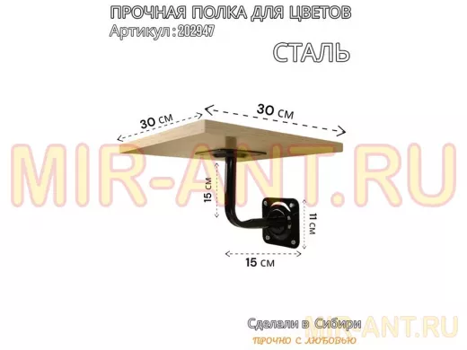 Полка для цветов настенная пьедестальная, размер 30х30см "LOFTOM-202947" цвет дуб сонома - MIR-ANT.RU