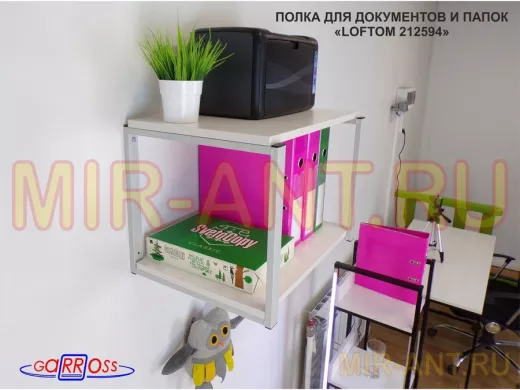 В корзину Купить в 1 клик Полка для папок и документов, высота 38см серый "LOFTOM 212594"две полки 35х54см, сосна выбеленная