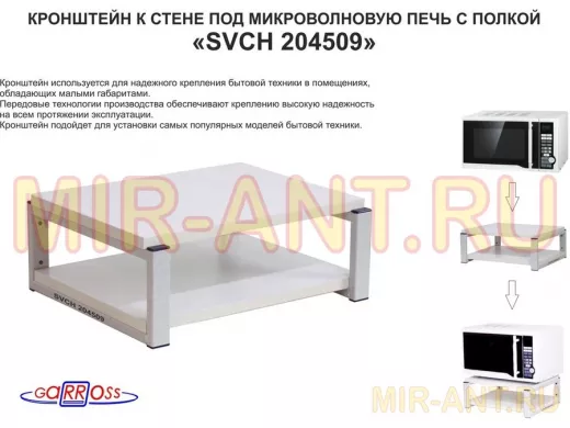 Кронштейн для микроволновки, 17см серый "SVCH 204509" под микроволновую печь,полка, 30х40см,сосна - MIR-ANT.RU