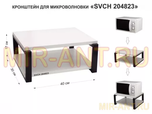 Кронштейн для микроволновки, 17см чёрный "SVCH 204823" под микроволновую печь, полка, 30х40см, сосна - MIR-ANT.RU
