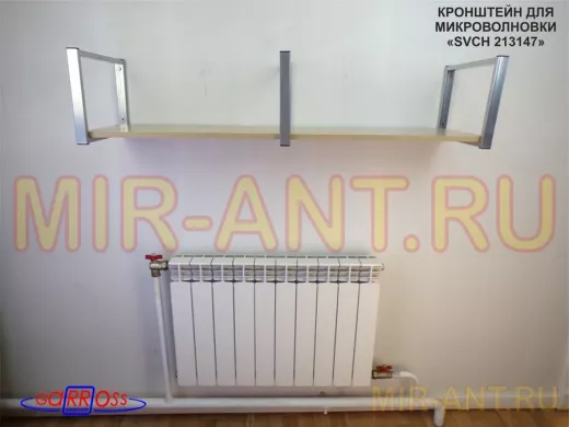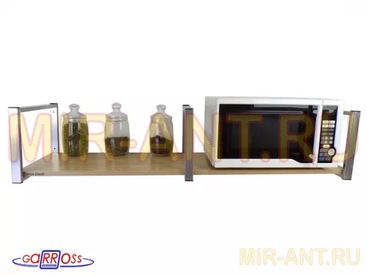 • Полка надежно крепится к стене при помощи анкеров или шурупов с дюбелями, на ней можно разместить микроволнрвую печь, кухонную технику, посуду, специи