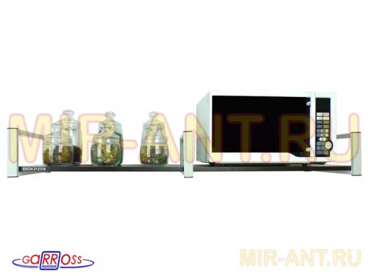 • Полка надежно крепится к стене при помощи анкеров или шурупов с дюбелями, на ней можно разместить микроволнрвую печь, кухонную технику, посуду, специи