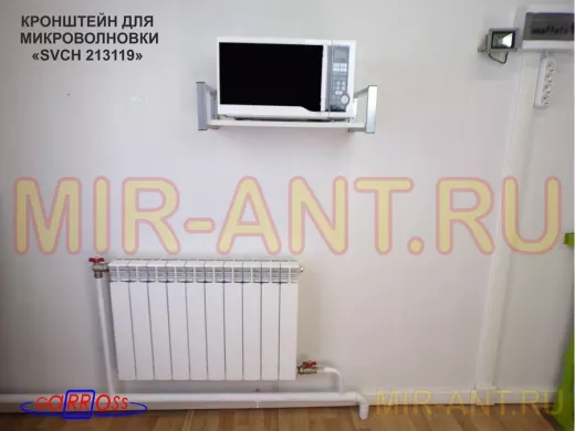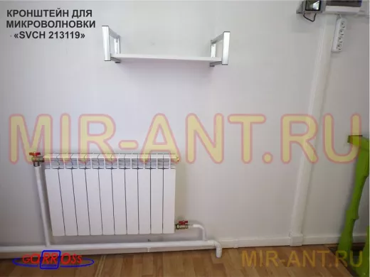 Кронштейн для микроволновой печи, серебристый "SVCH 213119" высота 15 см, полка 60х30 см,сосна выбел - MIR-ANT.RU