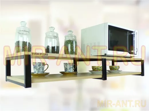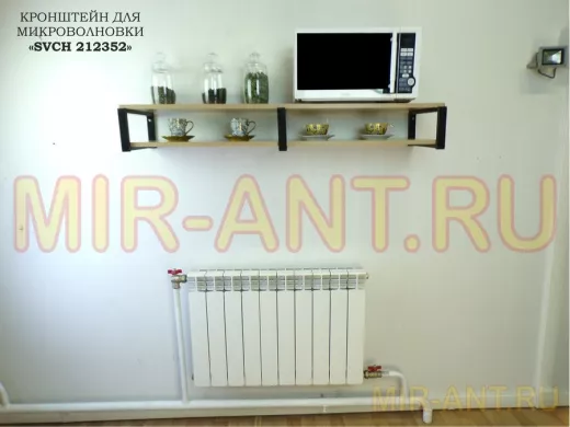 Кронштейн для микроволновки, 17см черный, 2 полки 30х120см "SVCH 212352" под микроволновую, дуб - MIR-ANT.RU
