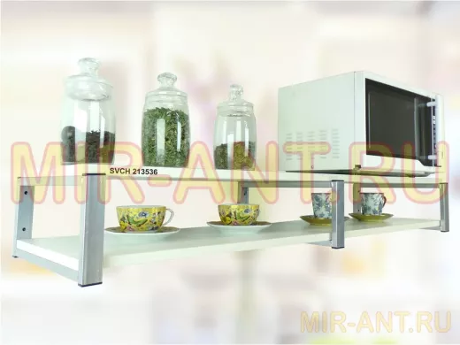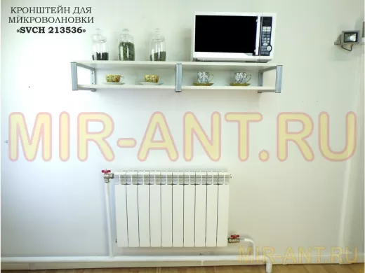 Кронштейн для микроволновки, 17см серебристый, 2 полки 30х120см "SVCH 213536" сосна выбеленная - MIR-ANT.RU