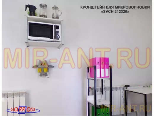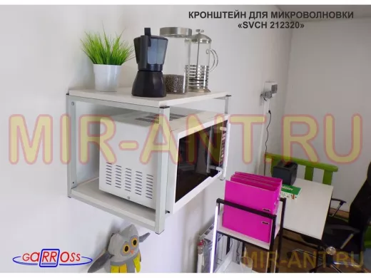 Кронштейн для микроволновки, 38см серый "SVCH 212320" две полки 35х54см, сосна выбеленная - MIR-ANT.RU