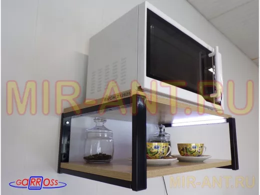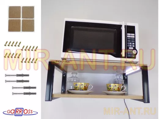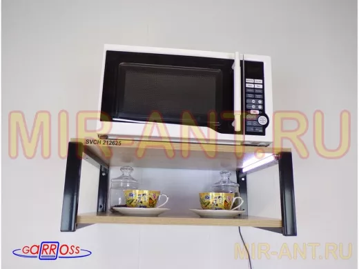 Кронштейн для микроволновки с подсветкой, 21см черный "SVCH 212625" две полки 35х54см, дуб сонома - MIR-ANT.RU