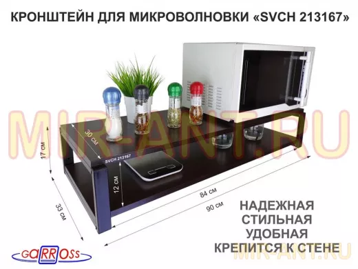 Кронштейн для микроволновки, 17см чёрный "SVCH 213167" под микроволновку,две полки 90х30, венге - MIR-ANT.RU