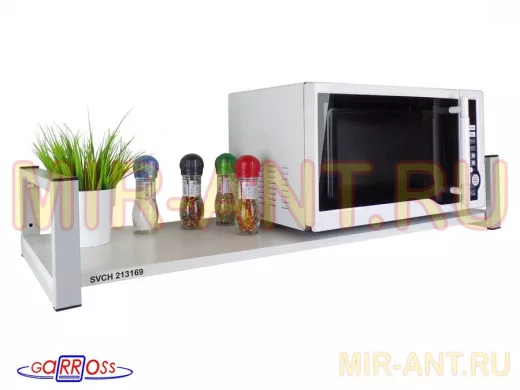 • Надежно крепится к стене при помощи шурупов с дюбелями, на ней можно разместить микроволновую печь, кофемашину, кухонную технику, посуду, специи