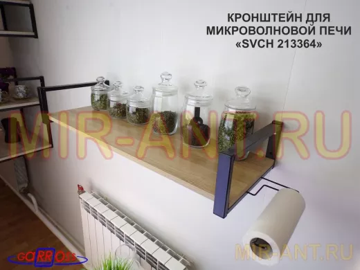 Кронштейн для микроволновой печи, 15см чёрный "SVCH 213364" полка 90х30, дуб, держатель полотенц. - MIR-ANT.RU