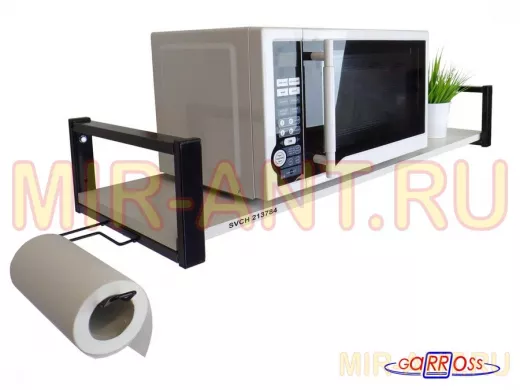 Кронштейн для микроволновой печи, 15см серый "SVCH 213784" полка 90х30,сосна с держателем полотенец - MIR-ANT.RU