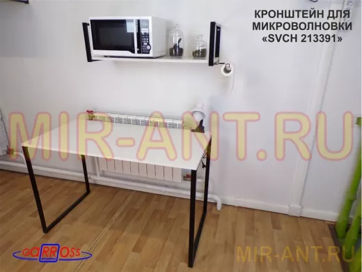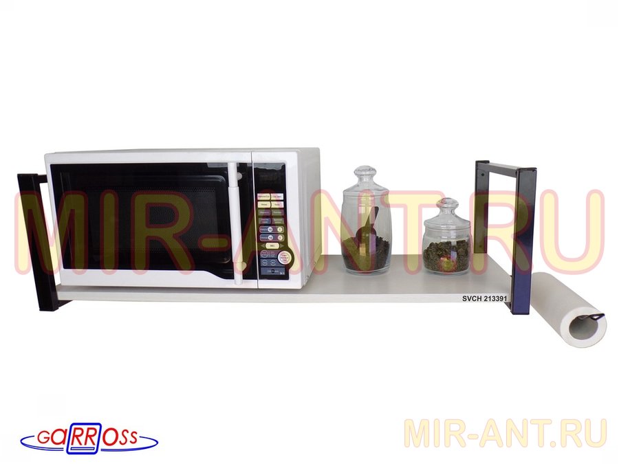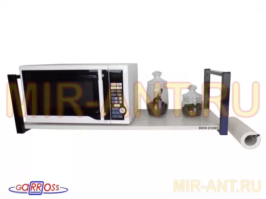 • Полка надежно крепится к стене при помощи анкеров или шурупов с дюбелями, на ней можно разместить микроволновую печь, кухонную технику, посуду, специи