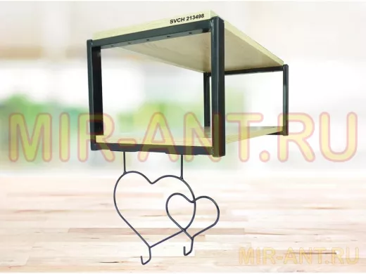 • Полка надежно крепится к стене при помощи анкеров или шурупов с дюбелями, крючки в виде двух сердец, крепятся к полке шурупами.