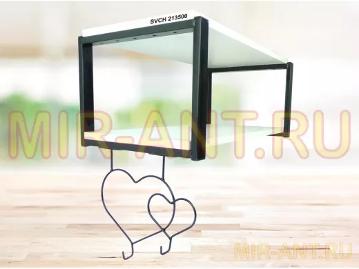 Кронштейн для микроволновки, 27см черный "SVCH 213500" полка 60х30 см, сосна, с двумя сердцами - MIR-ANT.RU