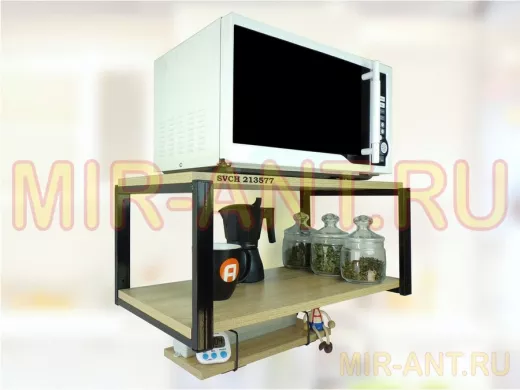 Полка для микроволновки 60x30см с подвеской 40x15см, 27см, черный "SVCH 213577" , дуб - MIR-ANT.RU