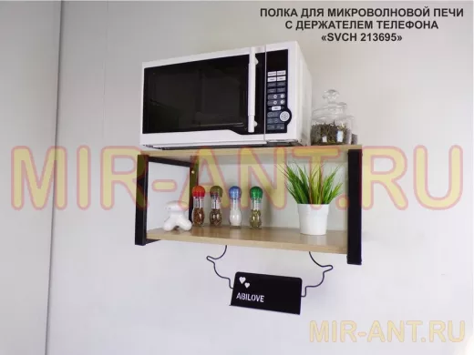 Полка для микроволновой печи с держателем телефона, 27см черный "SVCH 213695", 60х30, дуб сонома - MIR-ANT.RU