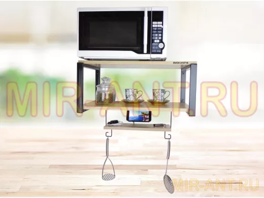 • Полка надежно крепится к стене при помощи анкеров или шурупов с дюбелями, на ней можно разместить микроволновую печь, кофемашину, тостер идр.кухонную технику, посуду, специи, различные необходимые мелочи