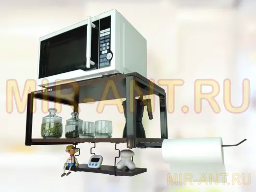 Полка для микроволновки 60x30см с подвеской 40x15см, 27см, черный "SVCH 213581" ,венге, с держателем - MIR-ANT.RU