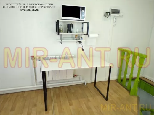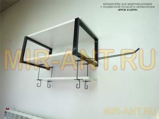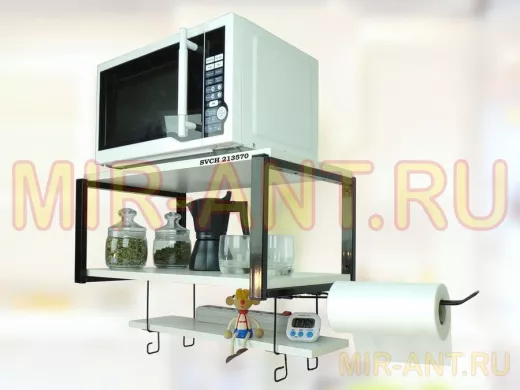 Полка для микроволновки с подвесной полкой, 27см, черный "SVCH 213570" 60х30см, сосна, держатель - MIR-ANT.RU