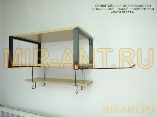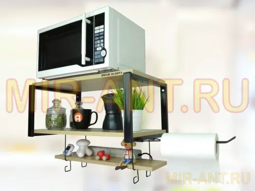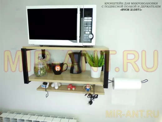 Полка для микроволновки с подвесной полкой и держателем полотенец,черная "SVCH 213571" 60х30см, дуб - MIR-ANT.RU