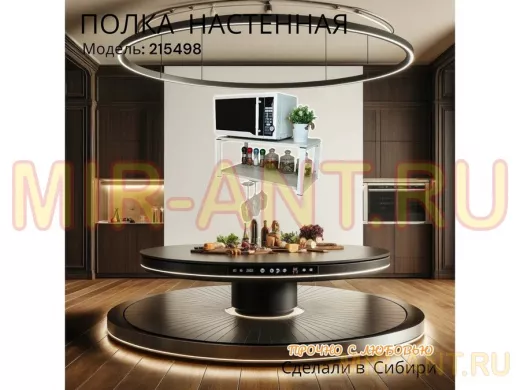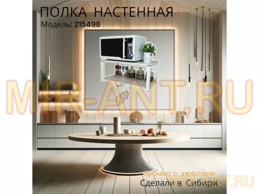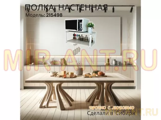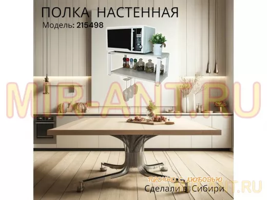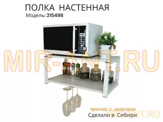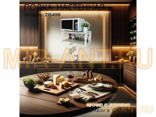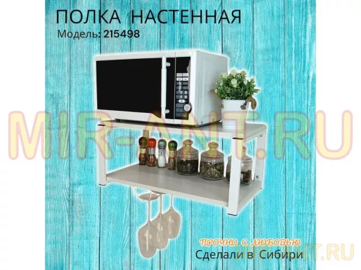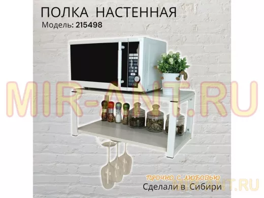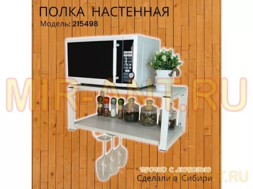 • Полка надежно крепится к стене при помощи анкеров или шурупов с дюбелями, на ней можно разместить микроволновую печь, кухонную технику, посуду, специи