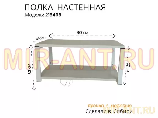 • Каркас изделия выполнен из высокопрочного металлического профиля. Полка изготовлена из ЛДСП