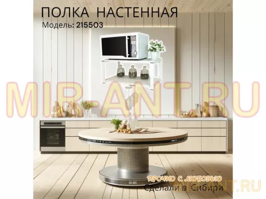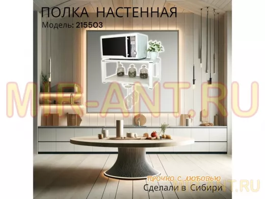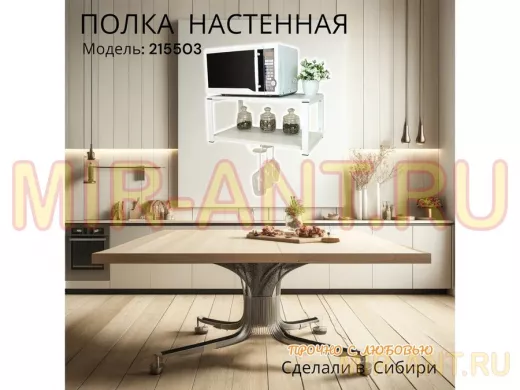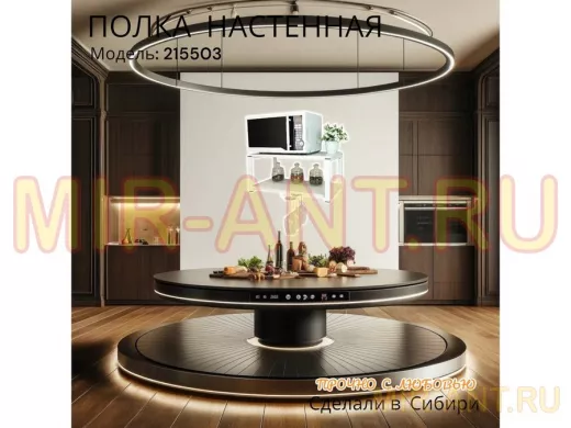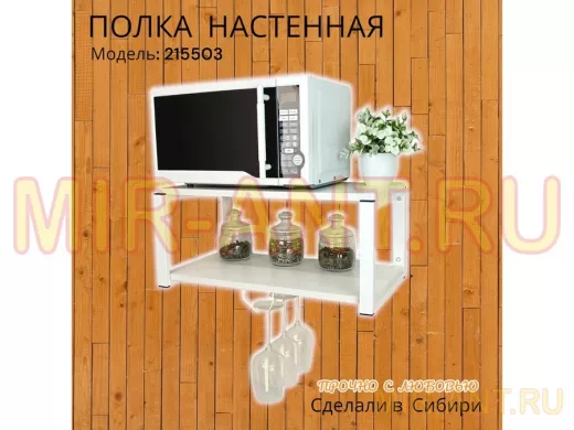 • Полка надежно крепится к стене при помощи анкеров или шурупов с дюбелями, на ней можно разместить микроволновую печь, кухонную технику, посуду, специи