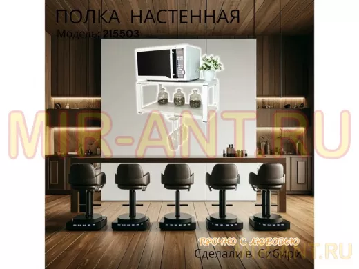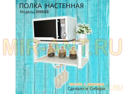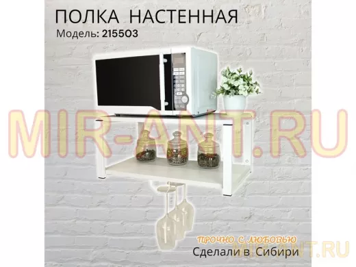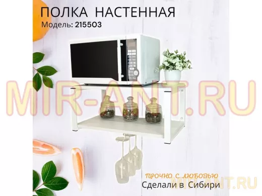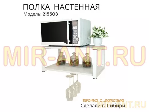 Полка c одним бокалодержателем для микроволновки "SVCH 215503" 60х30см, белая, белый - MIR-ANT.RU