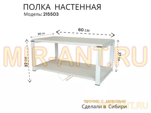 • Каркас изделия выполнен из высокопрочного металлического профиля. Полка изготовлена из ЛДСП