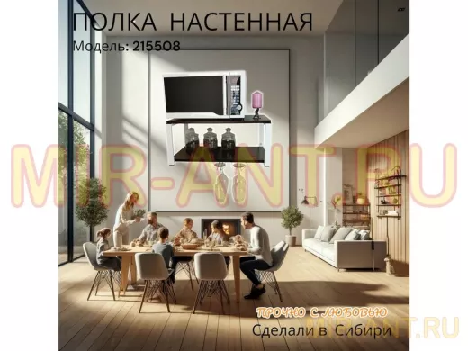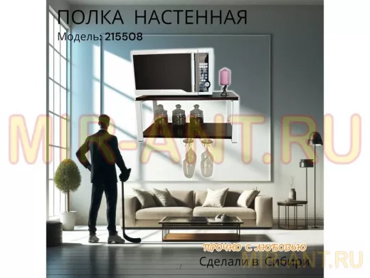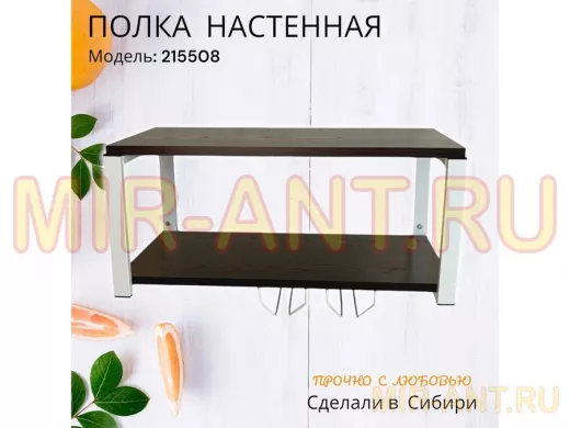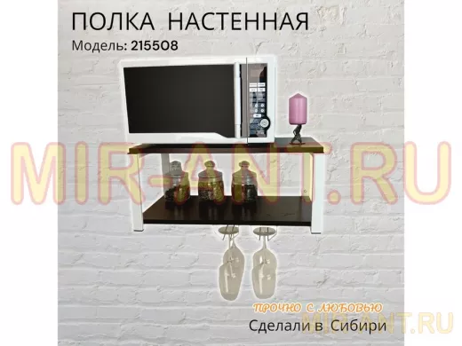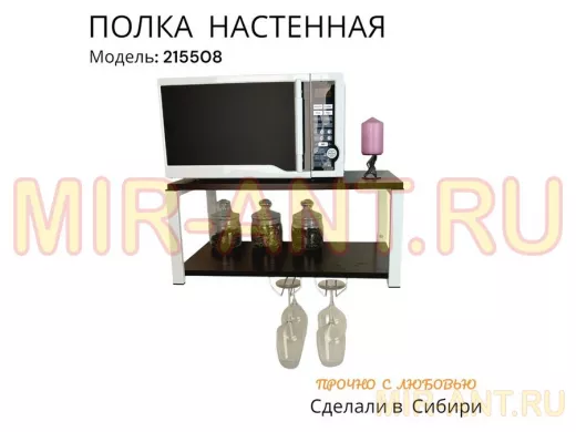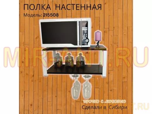 Полка c двумя бокалодержателем для микроволновки "SVCH 215508" 60х30см, белая, венге - MIR-ANT.RU