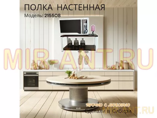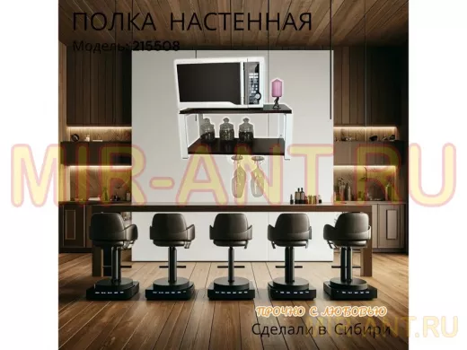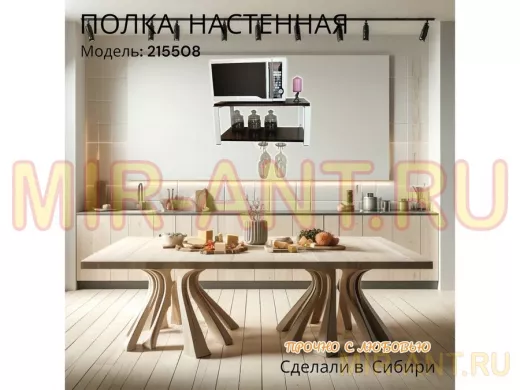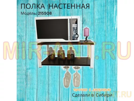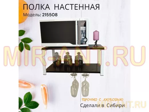 • Полка надежно крепится к стене при помощи анкеров или шурупов с дюбелями, на ней можно разместить микроволновую печь, кухонную технику, посуду, специи