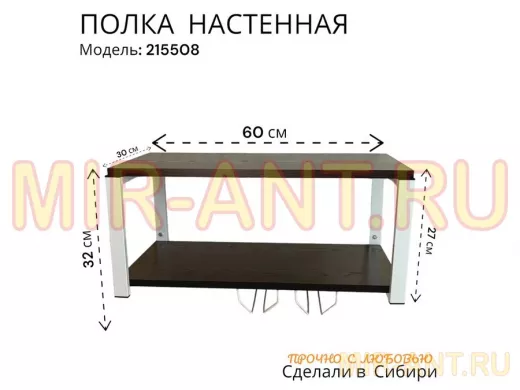 • Полка имеет надёжную конструкцию и может выдержать до 30 кг