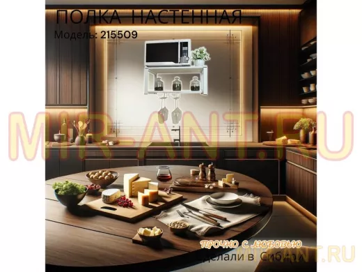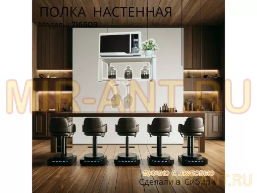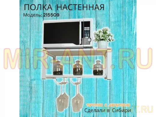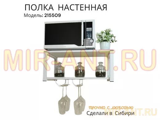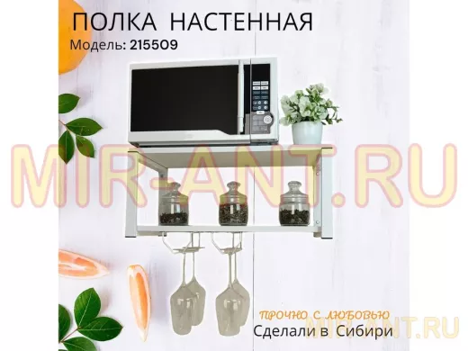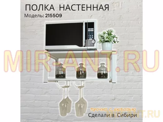 Полка c двумя бокалодержателем для микроволновки "SVCH 215509" 60х30см, белая, белый - MIR-ANT.RU
