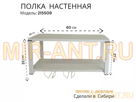 • Каркас изделия выполнен из высокопрочного металлического профиля. Полка изготовлена из ЛДСП