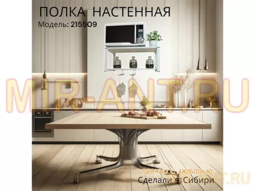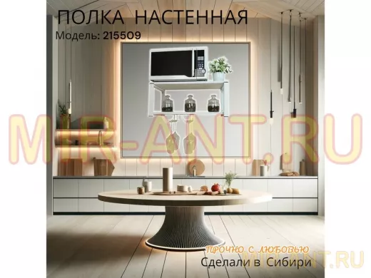 • Полка надежно крепится к стене при помощи анкеров или шурупов с дюбелями, на ней можно разместить микроволновую печь, кухонную технику, посуду, специи