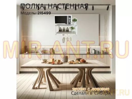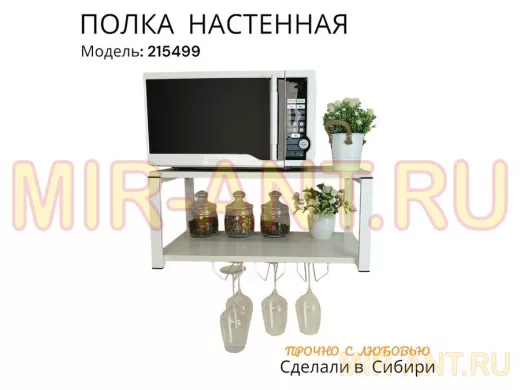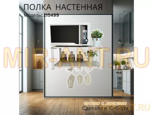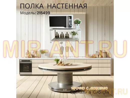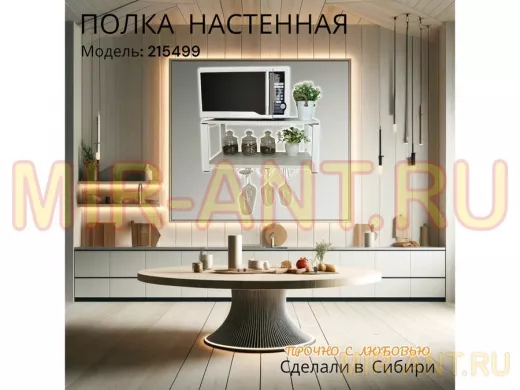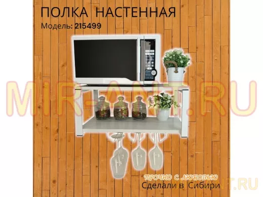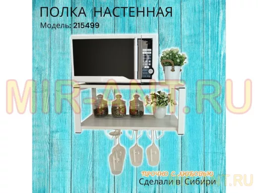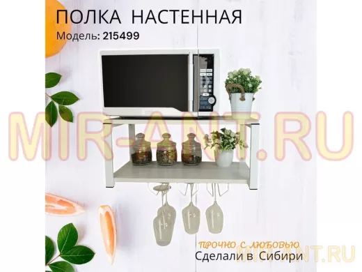 • Полка надежно крепится к стене при помощи анкеров или шурупов с дюбелями, на ней можно разместить микроволновую печь, кухонную технику, посуду, специи